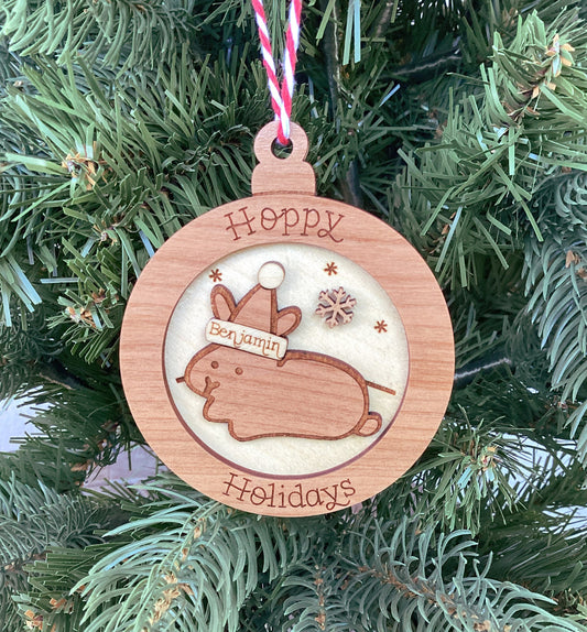Personalized Wood Two Bunny Holiday Tree Ornament