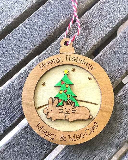 Personalized Wood Two Bunny Holiday Tree Ornament