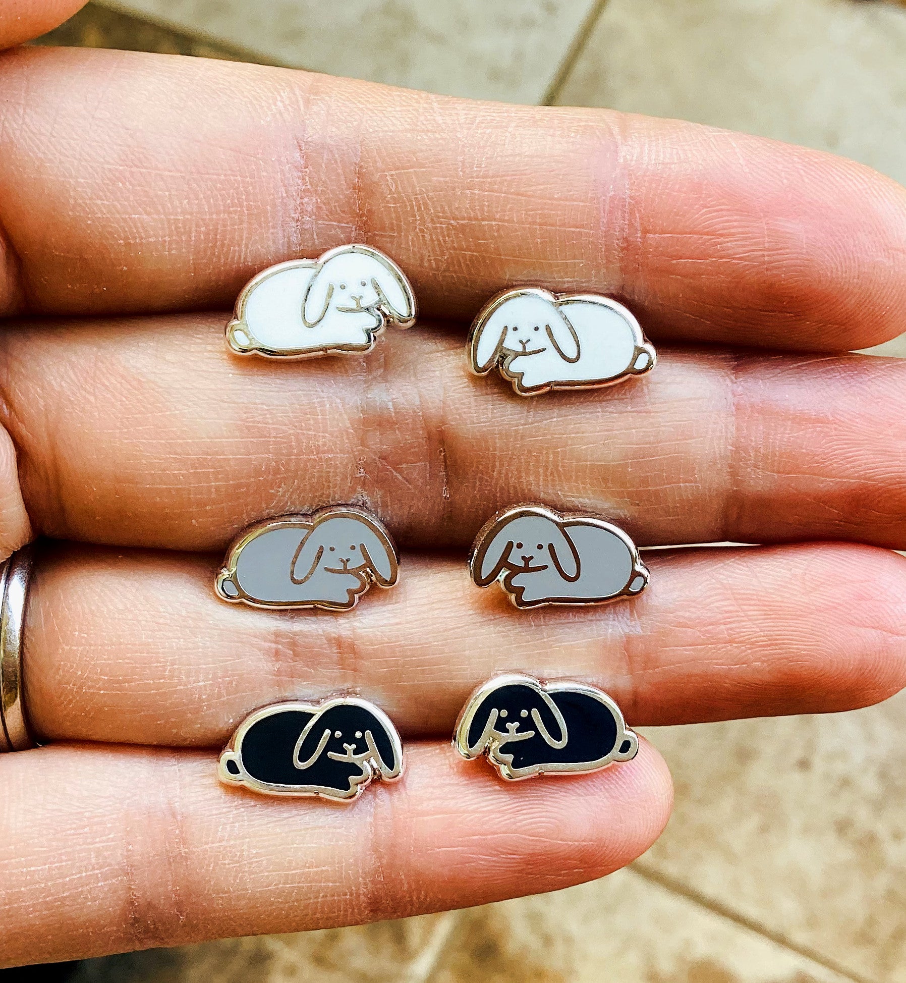 Super cute bunny stud earrings! This listing is for one pair - you will receive one left facing bunny & one right facing bunny. You can pick the same color bunnies, or mix and match any of the twelve choices!