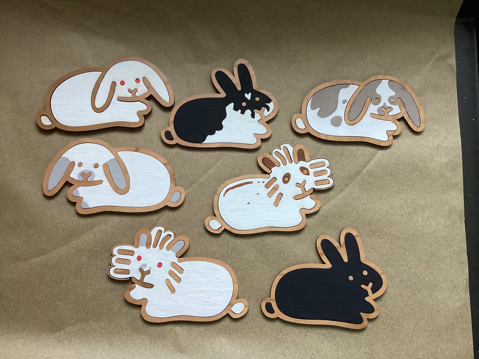 • Bunny colors: You can upload 1-4 photos showing the front of your bunnies' faces, sides, and tails. I may simplify your bunny's pattern during painting and will try my best to capture your bunny’s likeness. No photo required for all white or all black bunnies.