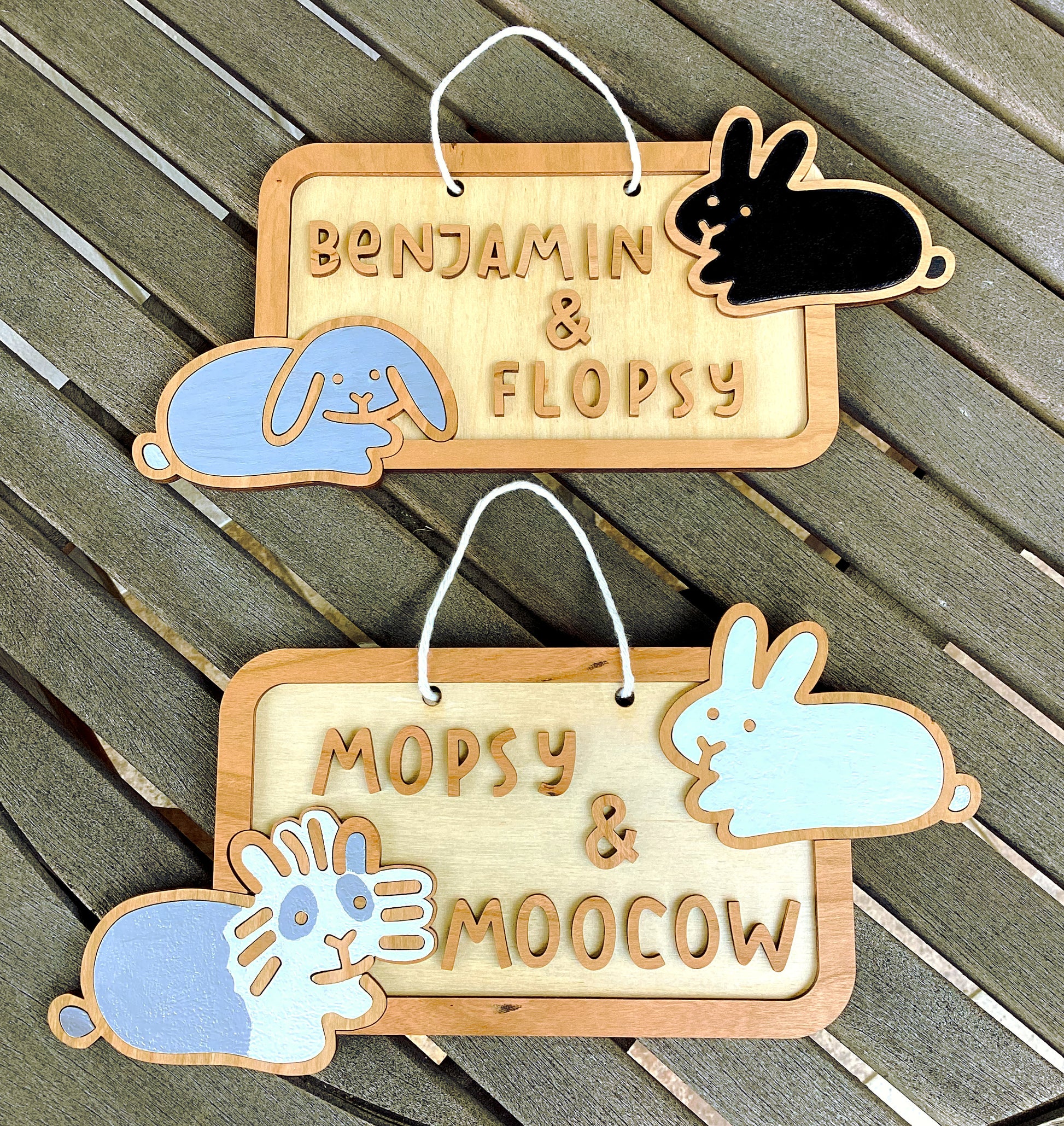 I don't think words can describe how happy I am, & how cute the signs are! I truly feel like it's one of the best purchases of my life. I see the signs on the rabbits door & it brings me joy to look at! I smile EVERY time seeing them. They look just like my bunnies 🐰