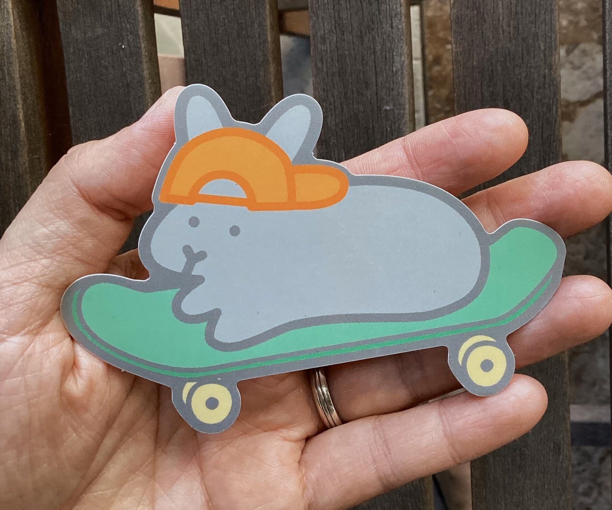 Skateboard bunny sticker for your laptop, water bottle, luggage, or your bunny's food/water dish! This design also has a matching pin and is part of Bunnies with Hats Volume 2.